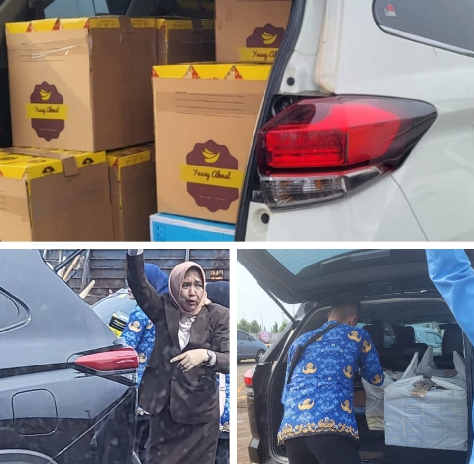 Selain dimasukan ke mobil Kadis Sosial ternyata kue kue kotak tersebut dimasukan juga ke bagasi mobil Toyota Rush Puspasari No Pol BE 1355 AAT.