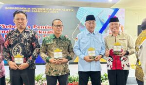 Penghargaan diserahkan saat acara Sarasehan dan Workshop Jurnalistik yang digelar di Hotel Amalia, Jalan Raden Intan Bandar Lampung, pada Kamis, (12/12/2024).